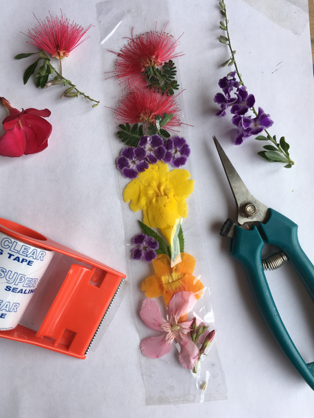 Go on a scavenger hunt around the outside of your house and collect flowers, leaves or seeds and stick them to a sheet of packing tape. Cover with another sheet of packing tape and you’ve preserved some botanicals! Use it as a book mark, hang it in a window, or use it in your art journal or anothe